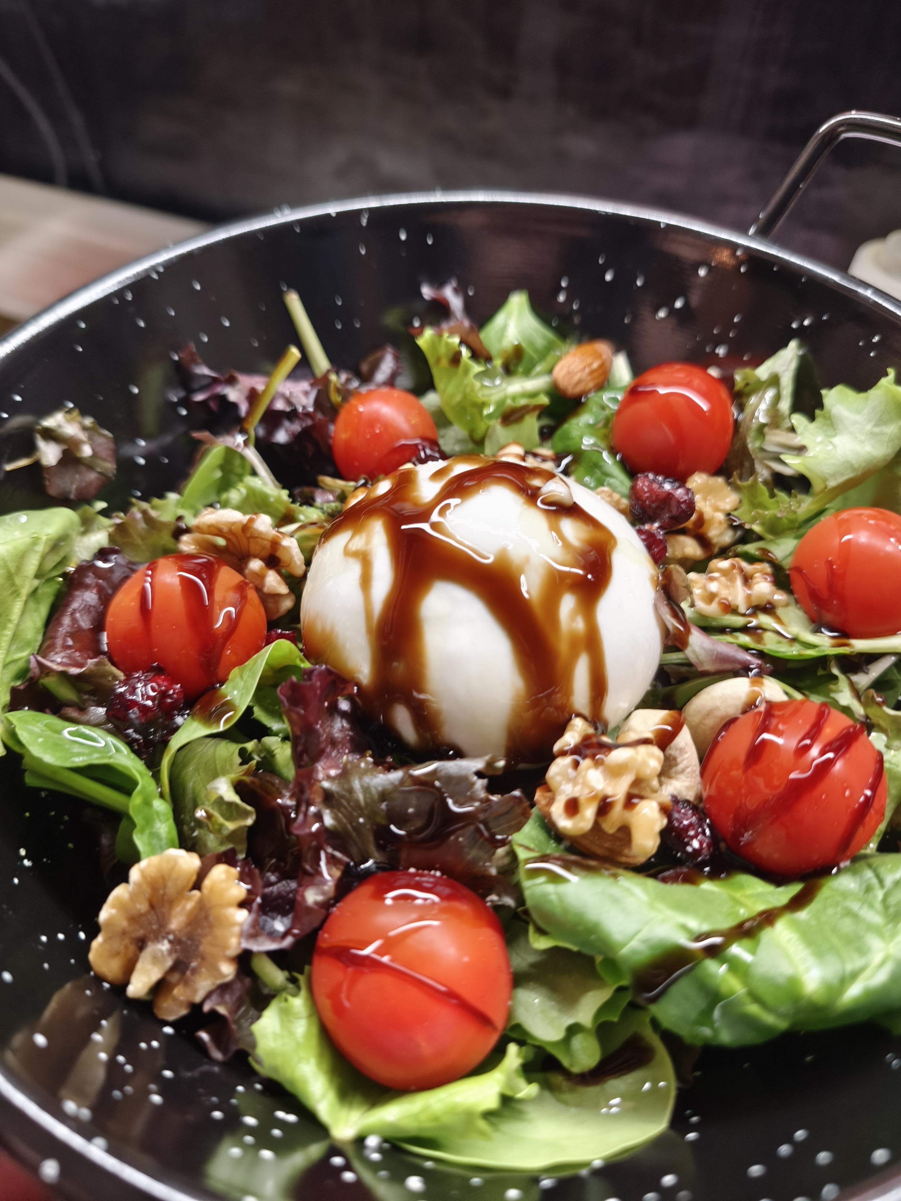 Ensalada de Burrata, Brotes Tiernos y Cherry